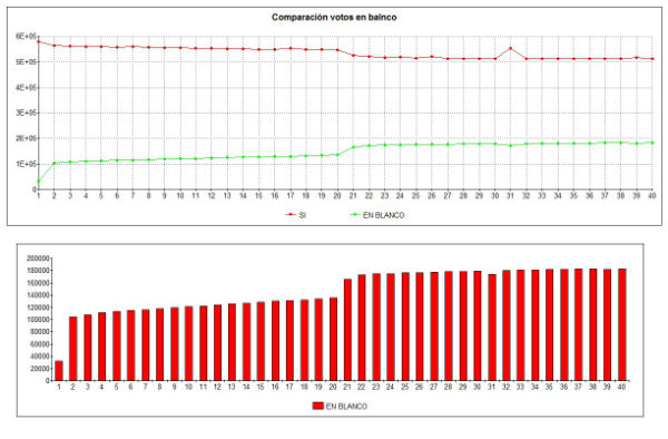 Esto no afecta los resultados presentados, hay que tomar en cuenta que los votos blancos no son considerados dentro de los votos válidos, por lo que su peso para la lectura e interpretación de estos resultados. Lo que sí nos importa es observar que ese comportamiento electoral ‘disciplinado’ que discrimina el Sí para unos y el No para otros podría ser, hay que analizar más y mejor, no tan común. Queda bastante pan por rebanar antes de afirmarlo, y esperemos que los expertos en estos temas puedan darnos más luces.